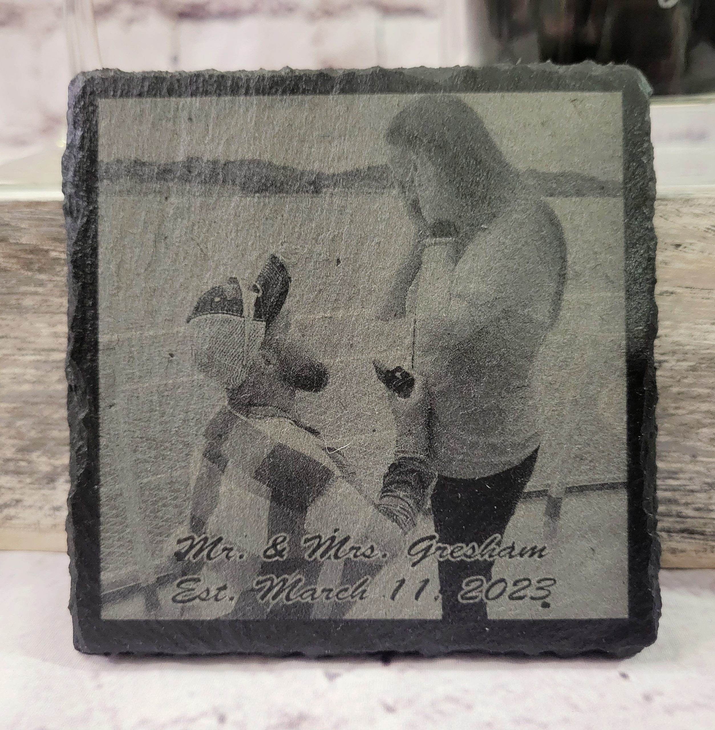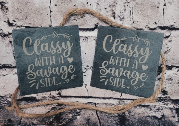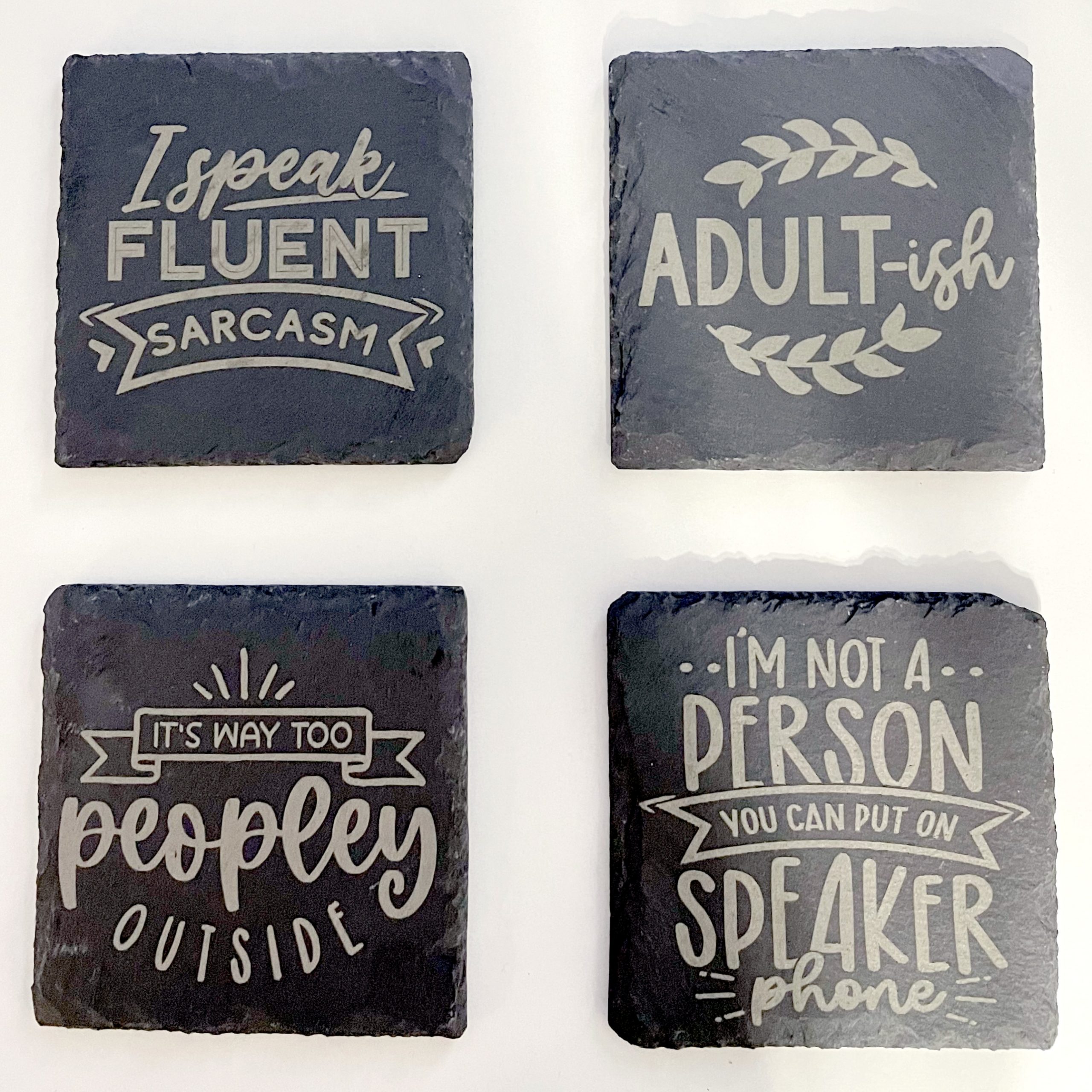 These simple and elegant laser engraved slate stone coasters are perfect for adding the ideal look to your decor while also protecting the furniture from water damage. They make a perfect affordable custom gift for friends, family, teachers, and co-workers. While you’re, here go ahead and gift yourself one too! Custom coasters are a great way to attract attention to any area and keep your tabletops and patio furniture safe.